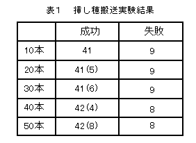 本実験では投入する挿し穂の数を10本から50本まで5段階に変化させ,上記の装置を用いて,分離,位置検出および搬送実験を行った。